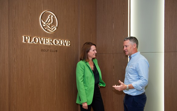 Dean Nelson, Tổng giám đốc Câu lạc bộ Golf Plover Cove và Vicky Jones, Giám đốc điều hành của 54 APAC, tại văn phòng Câu lạc bộ Golf Plover Cove.