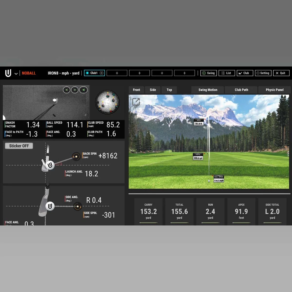 - Club Data: Club Speed, Smash Factor, Club Path, Club Face Angle, Club Face to Path