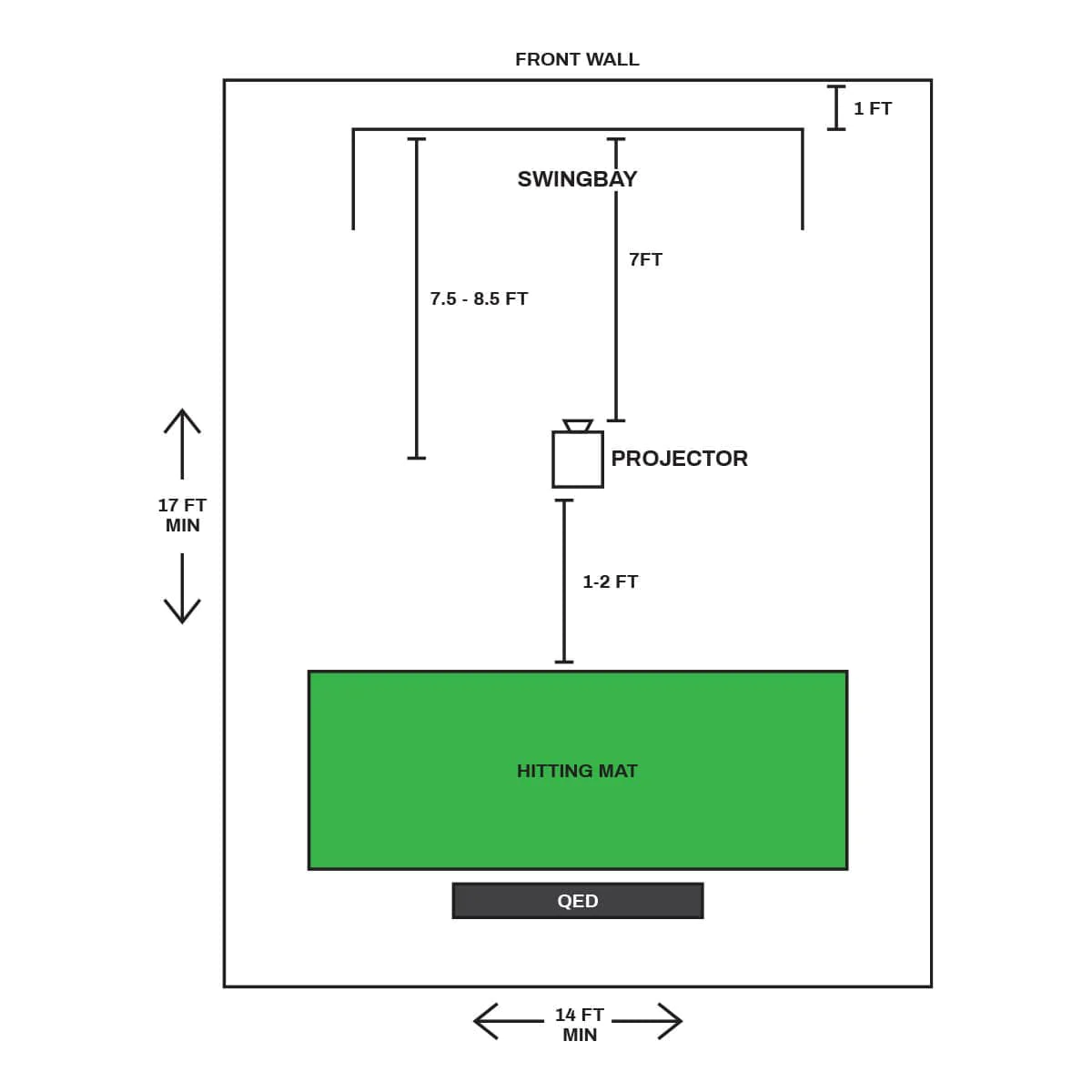 - Camera gắn trên trần nhà của QED mang lại vùng nhận bóng rõ ràng, cho phép cả người thuận tay phải và thuận tay trái thoải mái trong quá trình swing mà không ngại va chạm.